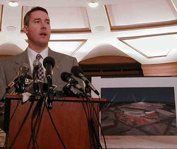 (3/22/01) - Vikings Executive Vice President Mike Kelley discuss plans for a joint Vikings-Gophers stadium.